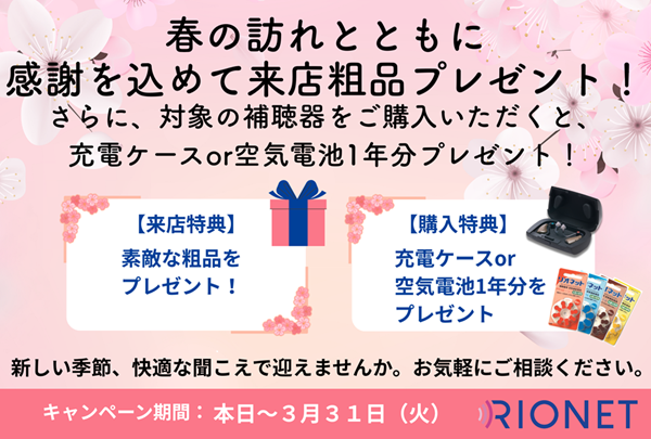 さらに対象の補聴器をご購入の方には「充電ケース」または「空気電池1年分」を差し上げます。